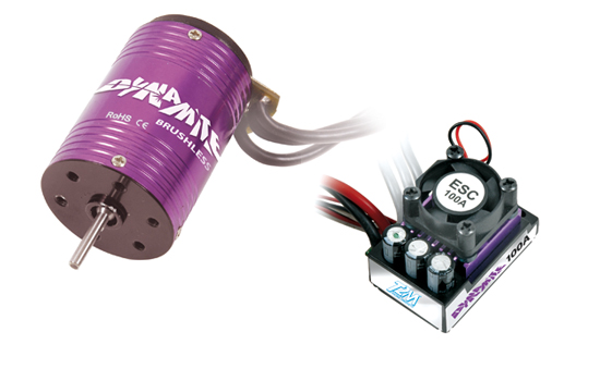 Moteur Brushless 8 tours - 4 460 KV et variateur brushless 100 A avec ventilateur de refroidissement intégré.